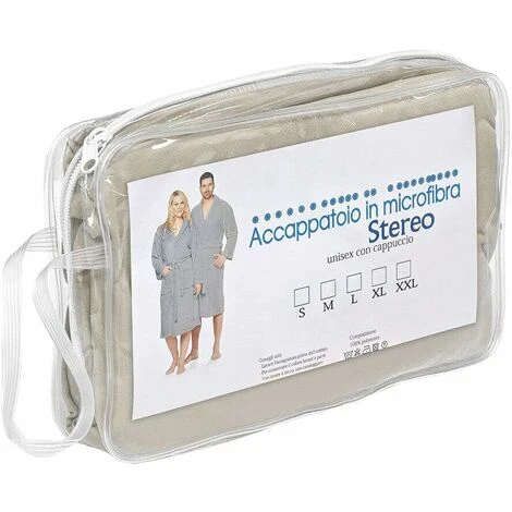 - Accappatoio microfibra con cappuccio, cintura e tasche.