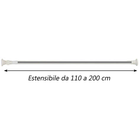 Bastone allungabile, ideale per tende da doccia, asta per tende o come appendi abiti si adatta quasi ovunque grazie alla sua funzione telescopica. Basta allungarlo alla lunghezza desiderata e bloccarlo saldamente in posizione. Grazie alle estremità antiscivolo in gomma su entrambi i lati, non si lasciano segni sulle pareti o sui mobili. L’asta garantisce una presa salda su praticamente qualsiasi superficie solida come piastrelle, intonaco o legno. Si installazione completamente senza viti o fori.
