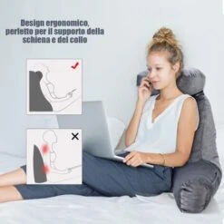Cuscino Ortopedico Cuneo Da Letto Con 2 FODERE ANALERGICHE Per Leggere E Migliorare La Postura