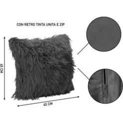 Federa Cuscino Decorativo A Pelo Lungo Pelliccia Morbida Sintetica 45×45 Con Zip Grigio