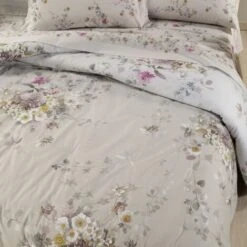 Caleffi – Completo-lenzuola Emotions 100% Cotone Floreale Matrimoniale Grigio