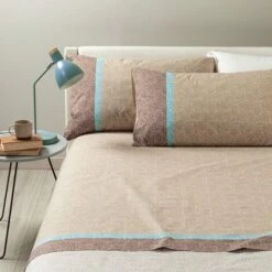 Caleffi – Completo-lenzuola Fiordaliso 100% Cotone Marinaro Matrimoniale Tortora