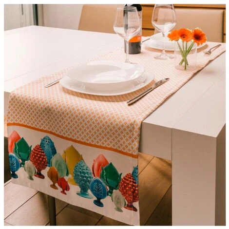 Casaviva® Runner Idrorepellente In Raso Extra Morbido Antimacchia Stirofacile Made In Italy Eleganti E Moderni Feste E Banchetti Interni Ed Esterni (POMI ARANCIONI)