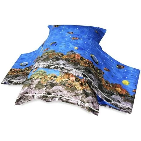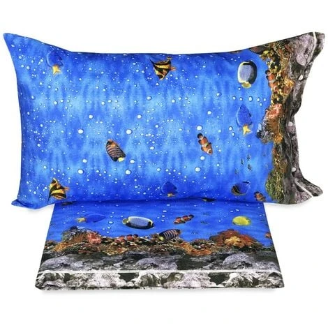 Completo lenzuola stampato in digitale che rappresenta la barriera corallina con tutti i suoi pesci tropicali, in puro cotone 100%.
