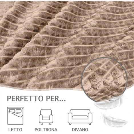 Unica del design moderno e raffinato coperta super morbida e calda con un lato liscio e soffice e l’altro con piccole mattonelle per il massimo morbidezza e calore grazie ai suoi 300 gsm