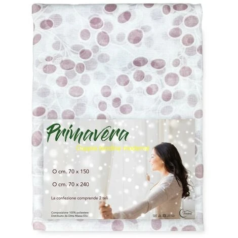 -tessuto……………………………………poliestere-composizione tessuto………….100% poliestere-funzione tessuto………………….semitrasparente-finitura superiore………………………………tunnel-finitura inferiore………………………………….orlo-colore…………………………………………….rosa-larghezza………………………………………..cm. 70-altezza……………………..cm.150 oppure cm.240-confezione…………………………………………2 teli È di tessuto semitrasparente cioè fà filtrare luce ma al tempo stesso impedisce a chi è all’esterno di vedere all’interno.