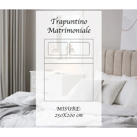 Qualità:Trapuntatura ricamata a laser per curare ogni dettaglio nei particolari,con bellissime ed eleganti balze applicate sui tre lati realizzato in pregiata microfibra con trattamento Manopesca per dare al prodotto una morbidezza unica Prodotto certificato OEKO TEX che garantisce che durante tutta la filiera produttiva non siano state utilizzati materiali e sostanze dannose per l’uomo e per l’ambiente