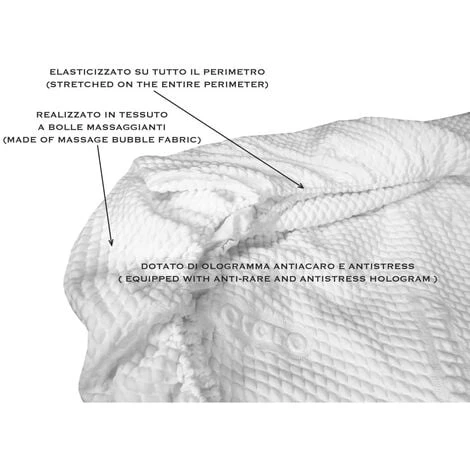 Novità !!! È anche un coprimaterasso massaggiante davvero morbido che grazie alle piccole bolle con cui è costruito il tessuto dona benessere al tuo corpo.