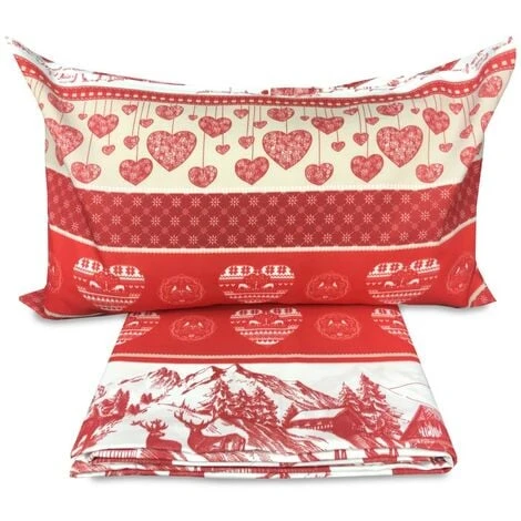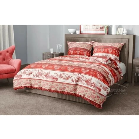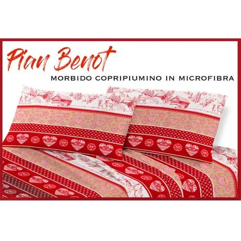 Copripiumino ‘ Pian Benot ‘ disegno molto originale con cuori, baite e cervi in stile tirolese. Semplice ma di gran effetto.