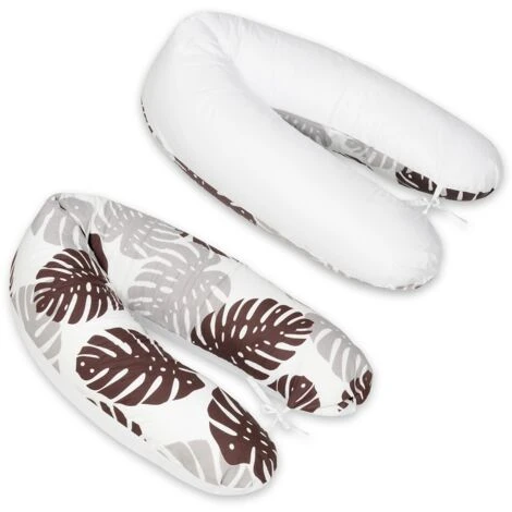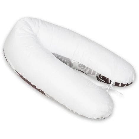 Un cuscino per allattamento 100% cotone con lenzuolo marrone/grigio – colori bianchi di Vikingchoice. Il cuscino di supporto può essere utilizzato in diverse situazioni e ha una lunghezza di 145 cm.