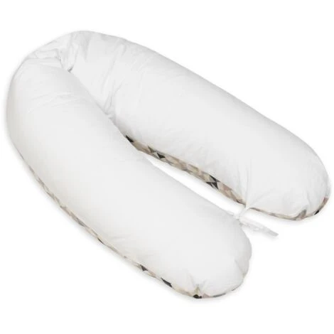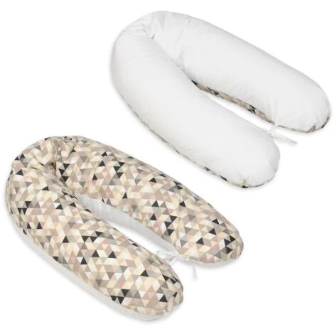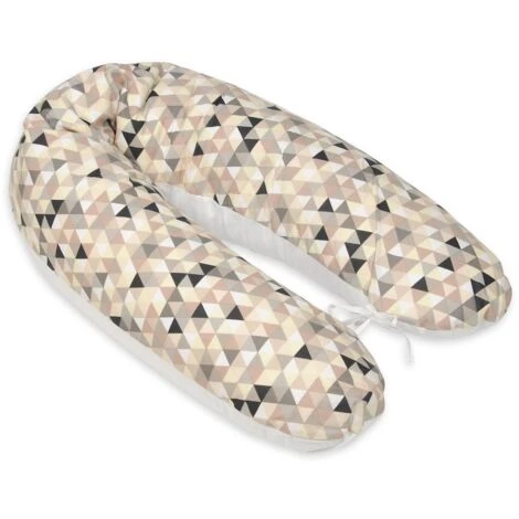 Un cuscino per allattamento 100% cotone con triangoli beige – colori bianchi di Vikingchoice. Il cuscino di supporto può essere utilizzato in diverse situazioni e ha una lunghezza di 145 cm.