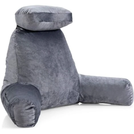 Design comodo da usare: Questo cuscino è dotato di un poggiatesta e due braccioli, quindi non solo la schiena ma anche la testa e le braccia possono essere sostenute. Inoltre, c’è una tasca sul lato del cuscino che può essere utilizzata per riporre riviste o telefoni cellulari.