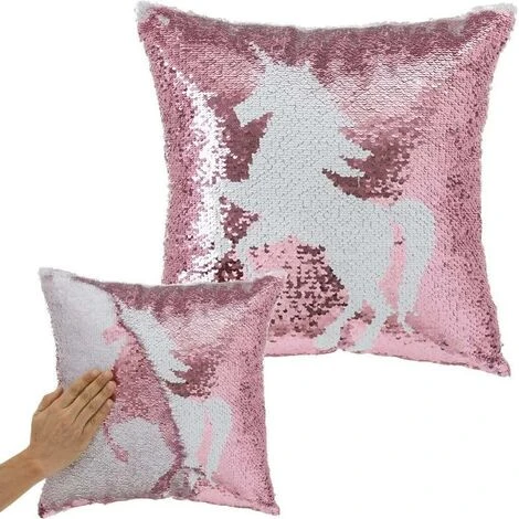 Questo bellissimo cuscino ਠfornito di una particolare federa ricoperta di paillettes con sagoma di un unicorno che cambia colore passando la mano su di essa, infatti il cuscino passa dal colore Rosa a quello bianco (o viceversa) semplicemente passando il palmo della mano sulla sua superfice!