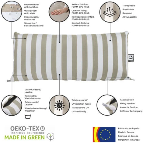 Sfoderabili e lavabili: realizzati con una cerniera che consente di estrarre gli imbottiti per poter lavare comodamente le fodere. Include imbottitura Confort: FOAM-EPS-PLUS composta da schiuma di poliuretano ad alta densità e perle di polistirene espanso ignifugo che conferiscono un grande comfort, leggerezza e traspirabilità.