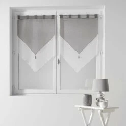 Douceur D’Intérieur – 1620383, Tendaggio Fiocco Con Passanti , 2 X 60 X 90 Cm , Voile Bicolore , Velo Bicolore , Bianco/Grigio