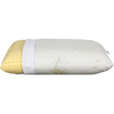 Cuscino in Memory Foam Evergreenweb ad alta densità con speciale micro foratura che migliora la traspirazione, Ergonomico, Automodellante. Fodera Aloe Vera con oli Essenziali – Sfoderabile con Zip e Lavabile in Lavatrice, tessuto Traspirante, Anallergico e Antibatterico. Guanciale Modello Saponetta ANTIRUSSAMENTO Ortopedico per SOLLIEVO dal dolore al Collo e Cervicale, adatto ad ogni posizione nel sonno (Schiena, Fianco, Pancia). DISPOSITIVO MEDICO CLASSE 1 DIRETTIVA 93/42/CEE Detrazione del 19% dalle tasse. Misura Cuscino Letto: 70 x 40 alto 18 cm.