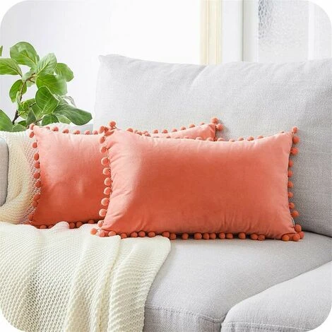 - MORBIDO: fodere per cuscini in velluto di microfibra di alta qualità, che si sentono morbide, elastiche e confortevoli, ipoallergeniche, lucide e resistenti alle macchie, con pompon bianco crema carini tutti intorno.