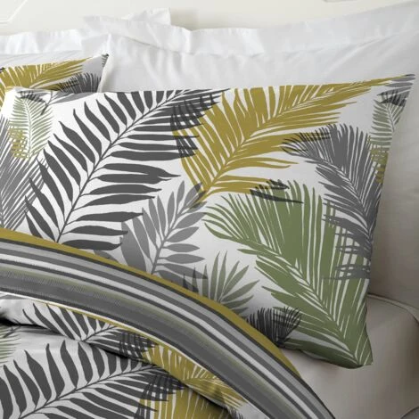 Questa illustrazione drammatica e esotica foglia di palma utilizza questa stagione deve avere colori per effetto sorprendente. Il retro presenta una striscia moderna pulita in colori coordinati che aggiunge profondità e interesse al design complessivo. Splendidamente realizzato in policotone di facile manutenzione, per morbidezza e durata.