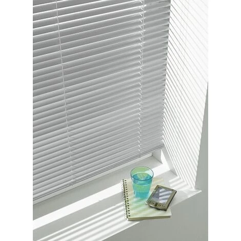 Decorazione della finestra: Tenda in alluminio regolabile in lunghezza con lamelle larghe 2.5 cm, Non lascia completamente al buio, Consiglio: Girare verso l’interno per proteggere dal sole e dal calore, Le lamelle possono essere lavate