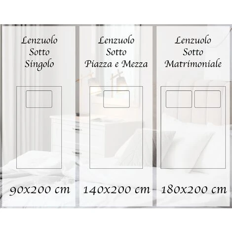 Disponibile in 3 misure piene ed abbondanti, Misura Singola 90 x 200 Cm + Angolo Elastico – Piazza Mezza 140 x 200 Cm + Angolo Elastico – Matrimoniale 180 x 200 Cm +Angolo Elastico