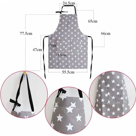 - Design e regolazione convenienti: sulla parte anteriore del grembiule sono presenti due tasche per riporre piccoli oggetti nel grembiule. La lunghezza e la larghezza del grembiule da cucina possono essere regolate secondo necessità, adatta a diverse forme del corpo e girovita.
