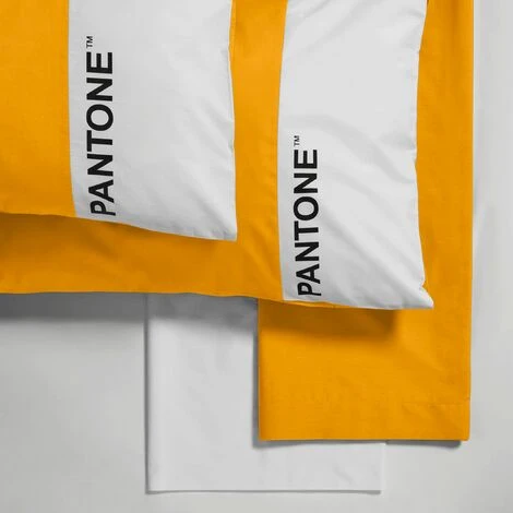 Pantone™ – Completo Letto Singolo 1 Piazza Con Lenzuola Letto Singolo 150×280 + Federa Cuscino 50×80 + Lenzuolo Con Angoli Singolo 90×200 In Cotone, Per Materasso Singolo 25hcm, Ocra/Bianco
