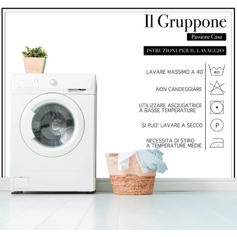 Manutenzione: Lavabile in lavatrice a 40 gradi, si stira tranquillamente, non candeggiare