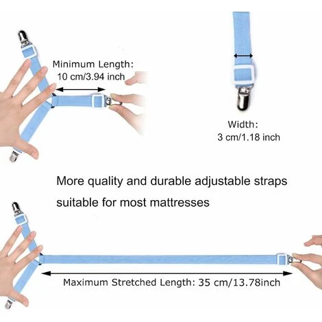 Facile da usare: non servono attrezzi, basta tenere il materasso e attaccare una clip al bordo del lenzuolo e la lunghezza del nastro può essere allungata secondo necessità.< /p>