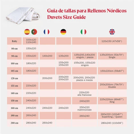 Composizione: Tessuto esterno: microfibra SilkTouch, 100% poliestere 83 gr / m2. Colore bianco. Imbottitura rigata 20 cm. Io vivo in giro. Imbottitura in fibra cava di silicone 6D, Ecolofil Feather Touch, 100% poliestere 125 gr / m2.