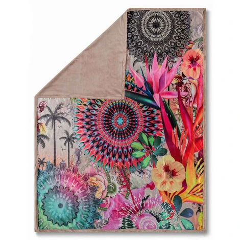 Il plaid presenta una bella stampa sul davanti e un retro monocromatico. Realizzata in polyvelvet con fodera in pile, questa coperta è molto morbida e confortevole al tatto.