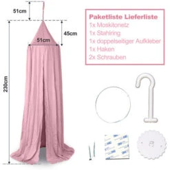 Lettino A Baldacchino – Zanzariera In Cotone Per Cameretta – Altezza: 240cmGrigio