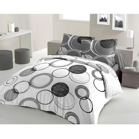 LOVELY HOME AUDACE Parure copripiumino antracite composto da copripiumino 220×240 cm con spacchetti per le mani e 2 federe 65×65 cm con balza trapuntata piatta – Composizione: 100% Cotone 54 fili – Parure fantasia – Lavare a 40° – Certificazione Oeko-Tex