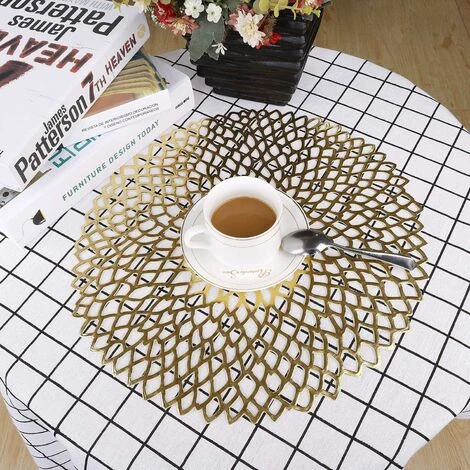 Dimensioni: ogni tovaglietta ha un diametro di 38 cm ed è adatta a tutte le dimensioni del tavolo. Se il processo è rugoso, puoi immergere la tovaglietta in acqua tiepida a 60 ° C per alcuni minuti per rimuoverla.