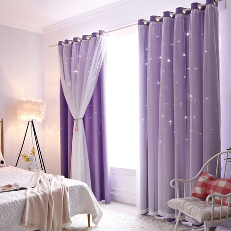 Questa è una tenda 2 in 1 in tessuto e garza. Nessun design del gancio, la rottura del gancio non disturberà. La tenda oscurante e la tenda a rete sono integrate e possono essere appese in un’unica tenda. Le tende abbaglianti sono progettate con un ritagliare piccole stelle attraverso le quali la luce
