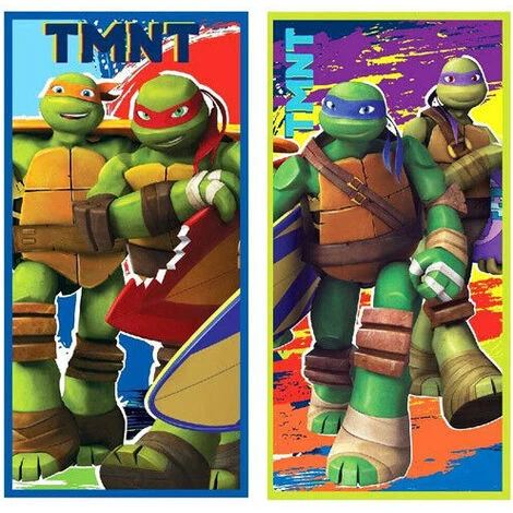 Un asciugamano adatto al mare, alla piscina o al bagno di casa che raffigura le nostre amate Tartarughe Ninja, in tutto il loro splendore in due differenti modelli.