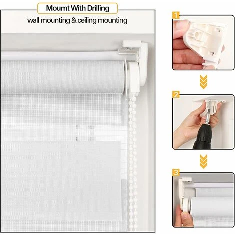 Questa tendina giorno/notte può essere riparata sul telaio della finestra senza forare con i ganci in 5 minuti (spessore adatto del serramento: 17-25 mm). Per una finestra che non può essere aperta, puoi anche fissare la tenda a pacchetto con foratura su parete, soffitto, infissi. Forniamo entrambi i tipi di accessori, non è necessario acquistare gli accessori extra.