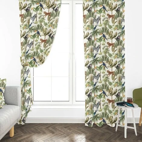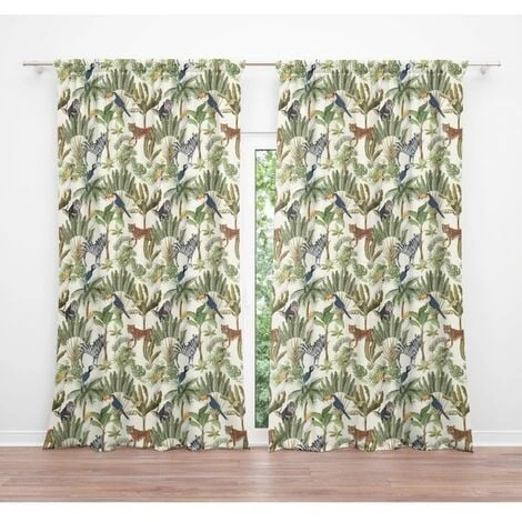 Stampata con tucani, pappagalli, scimmie, zebre e leopardi, immersi in questo paradiso naturale. Completamente prodotta in Italia sia nel tessuto e sia nella stampa digitale in alta definizione, TUTTE LE FOTO SONO REALI.