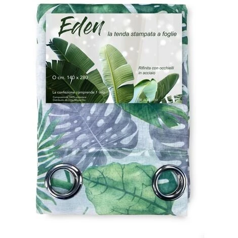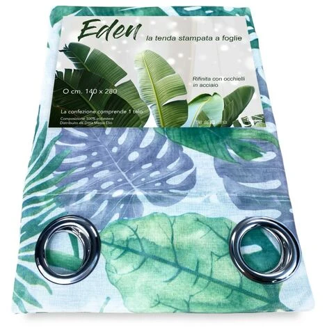 Tenda ‘ FOGLIE Verdi ‘ confezionata già pronta per l’uso realizzata in tessuto di poliestere effetto bouclè stampato con moderne foglie sul verde per dare un tocco di originalità al tuo ambiente.