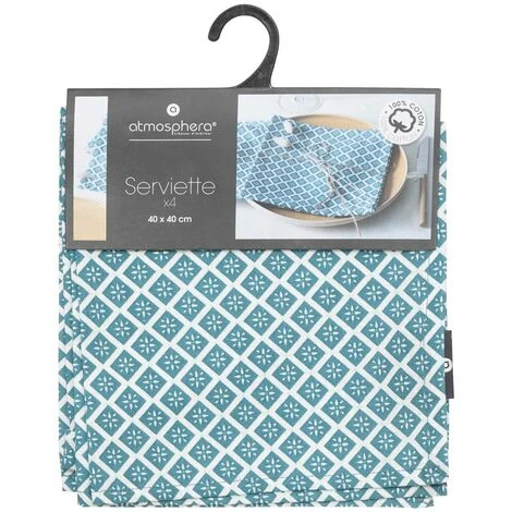 Tikal anatra blu stampato tovaglioli x4 in cotone