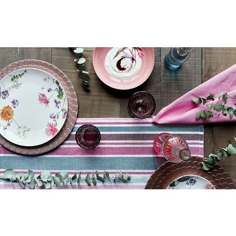 il runner della collezione tessile fresia con le sue righe dai colori pastello colora e rinfresca la tua tavola