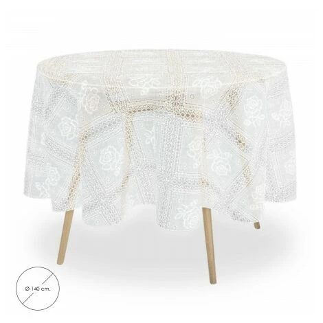 – Tovaglia in gomma trasparente con disegno da ricamo in forma quadrata. Design moderno ed elegante per ogni occasione.
